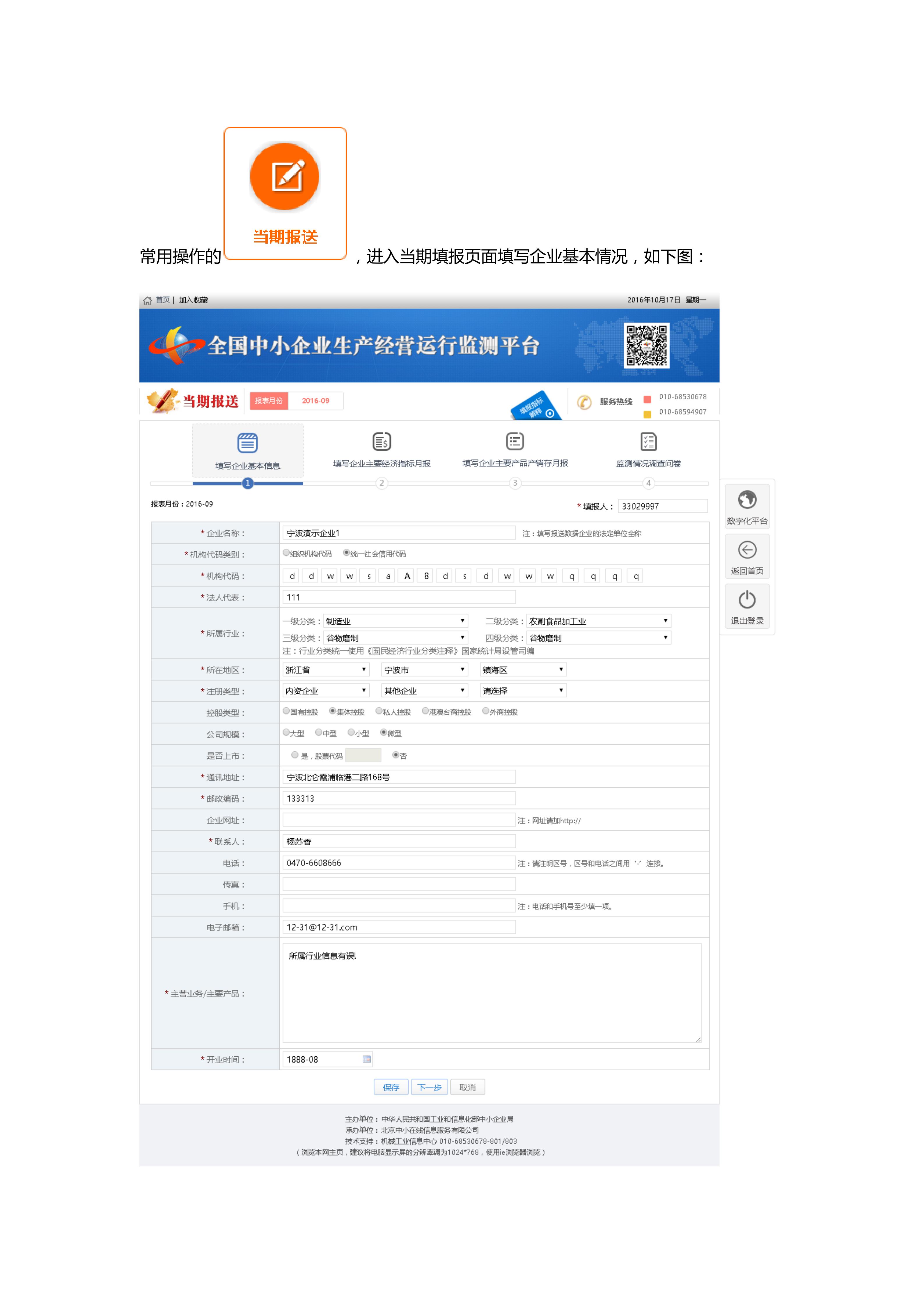 工信部中小企业运营监测平台企业申报操作指南